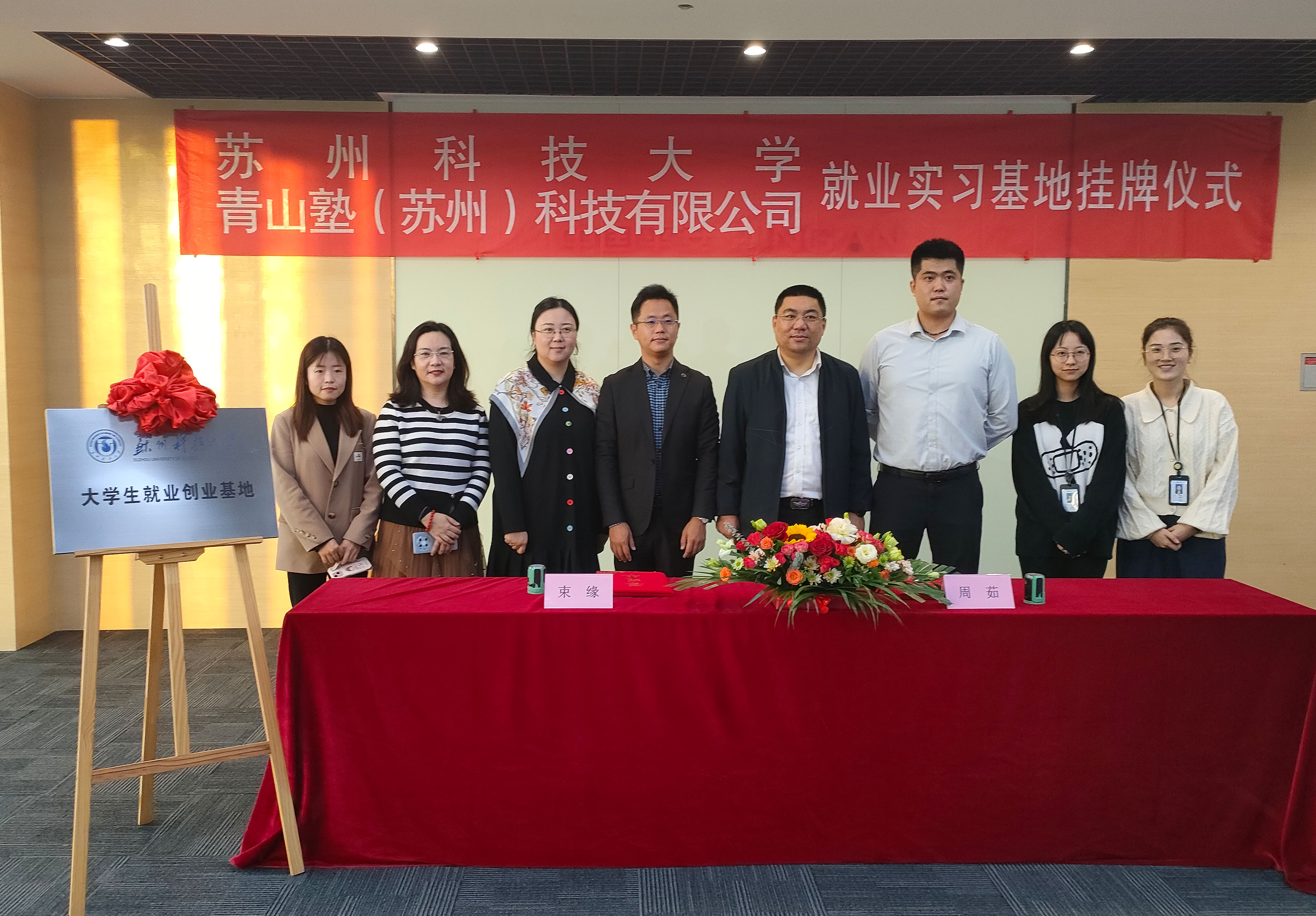 2022年11月11日,青山塾与苏州科技大学达成校企合作意识,举行大学生就业实习基地签约揭牌仪式。